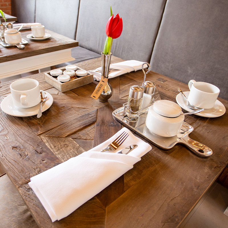Sie starten mit der wichtigsten Mahlzeit des Tages. Das beliebte Achterum Landfrühstück - am Tisch serviert - mit Produkten aus der Region.